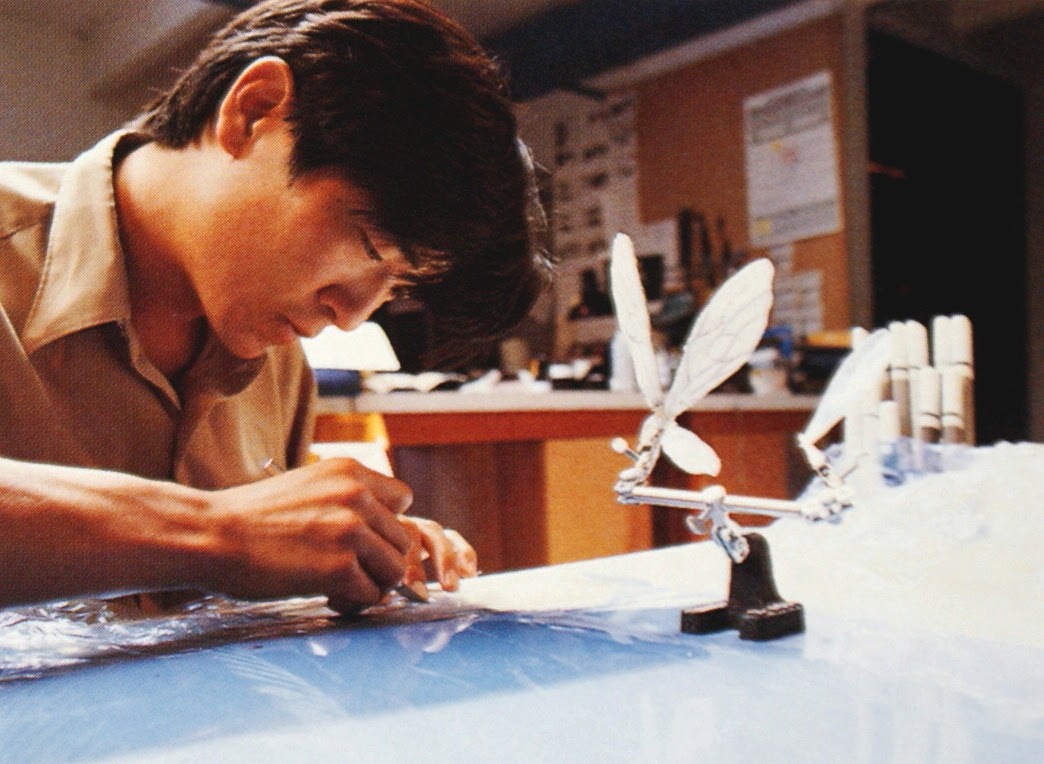 WILLOW's Animation Supervisor, Wes Takahashi at work creating scale fairy wings out of clear plastic carefully etched and shaped.