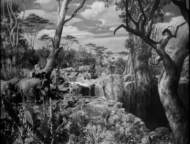 Producer Sol Lesser made a bunch of Tarzan features for RKO with this shot being from TARZAN AND THE HUNTRESS (1947).  Matte artist Spencer Bagtatopolis painted this shot, and numerous others for further Tarzan pictures, with Spencer's family sharing old photographs of his work with me.